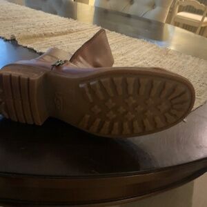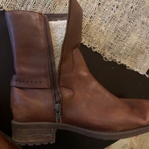 Brown boots with sherpa lining. Distressed look. Light wear.