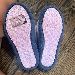 Ugg fluff yeah slipper pink and navy dip dye. Super cute and cozy! Fur under toes slightly matted. And very very slight dirt. Overall excellent used condition. Just outgrown.