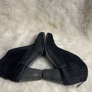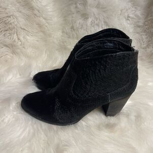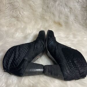 Ugg leather calf hair black reptile ankle heels boots back zipper almond toe.size 8.5. Pre owned in good used condition normal wear. See all pictures any questions please message.B12