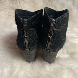 Ugg leather calf hair black reptile print ankle heels boots back zipper size 8.5