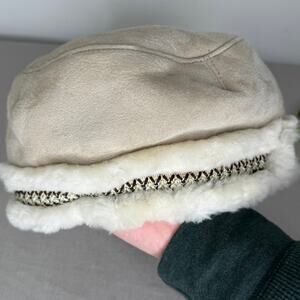 Ugg shearling hat. Embroidered trim. Soft, warm hat.