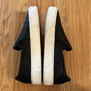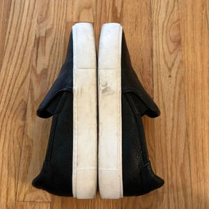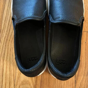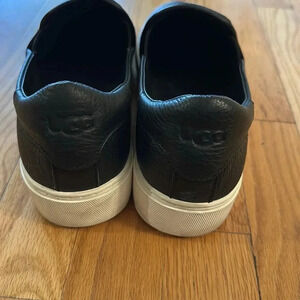 Ugg sz 10 black leather sneaker rubber sole great pre owned condition slip ons