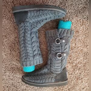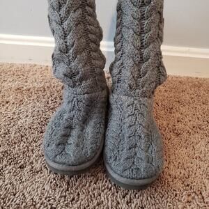 Ugg route cable knit sweater mid calf boots gray 5