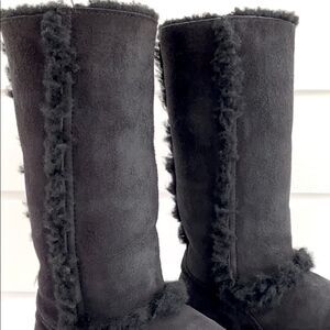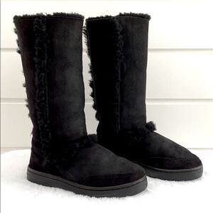 Ugg Sundance II Tall Shearling Sheepskin Black Waterproof Suede Boots
