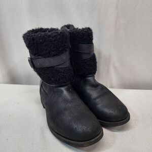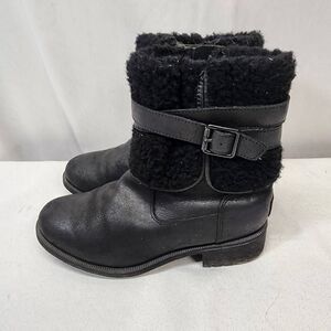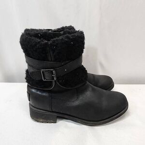 Ugg Australia Women's 7.5 Blayre IV Black Ankle Leather Sheepwool Lined Boots