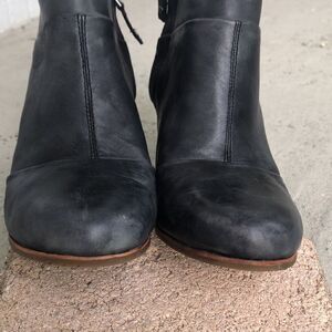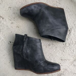 Super cute, wedge ankle boots. Please check out the pictures the right boot on the inside has a scratch. Heel height is approximately 3.5 inches