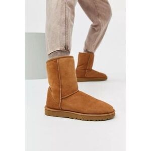 Give feet a break in these luxuriously cozy suede boots from UGG. Their classic silhouette cut mid-calf in a twinface sheepskin and soft suede, pretreated to repel water and stains Lined with a plush natural wool and fitted on a durable Treadlite by UGG sole for steady traction