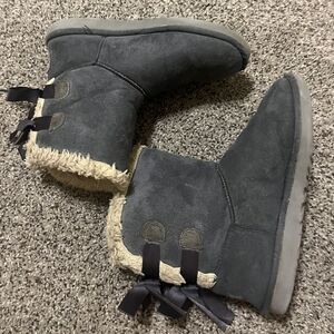 Ugg Double Bailey bow boots blue 7 winter Sherpa sheep