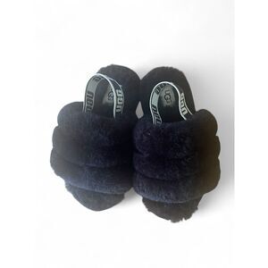 Ugg Kids Oh Yeah Black Fur Open Toe Slip On Slides Slippers US 10 EUR 27.5