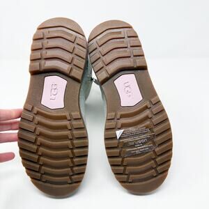 Ugg Metallic Silver Corene Boots Size 6 Side Zip/Lace Up Back Shearling Footbed