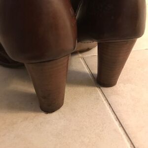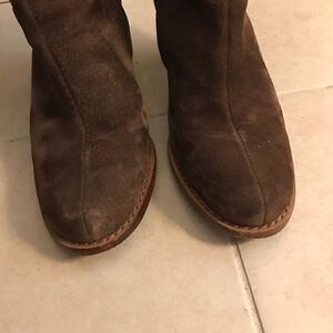 Brown suede and leather UGGs they are in good condition but the back of one of the heels is scuffed up as you see in the picture. Clean these up a little bit and they are fantastic. The inside sole is still fluffy. Inside says US 6 EU 37