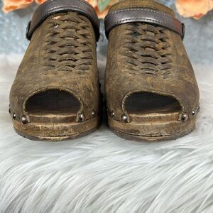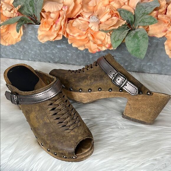The “Josie” peeptoe has beautiful braiding on the top and a convertible ankle strap that can be worn up or down. Throw them on with a pair of jeans or dress them up with tights! The upper is crafted in soft and rich American nubuck leather. The ankle strap is done in pewter-toned metallic leather for a sexy contrasting detail. Nickel-free gunmetal rivets adorn the Alderwood base and add a modern touch. Its Swedish Vollsjo rubber lug sole features a zig-zag design to secure the ultimate traction on slick sidewalks.