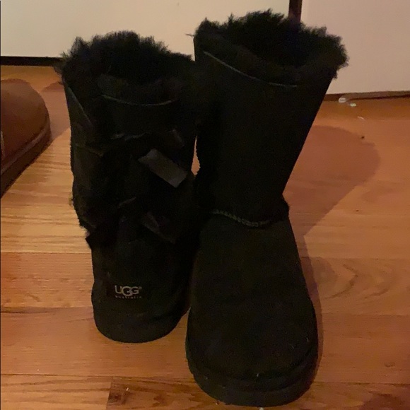 Black uggs with lace on the back worn but in good condition