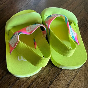 Children's Uggs Green Zuma Slide features a nylon upper to secure the foot, an elasticized slingback strap for easy on-off, and a cushioned footbed for soft stepping. It's great for growing feet and ideal for active summers, pairing with light sundresses, denim shorts, and bathing suits.