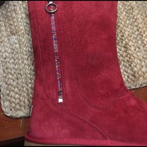 Red Uggs with multi-colored side zippers Never Been Worn . Kids size 5 but it will accommodate women's size 7 as well.
