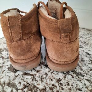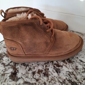 Uggs Suede Neumal Lace Up Boots With fur Caramel/ Tan color size 4
