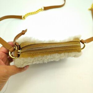 Uggs Ugg Australia Women's Quinn Box Zip Crossbody Handbag BZ001 Chestnut Brown Tan Shearling Lined l. Good used condition, some signs of wear throughout including dirtiness, could use some suede cleaner! See all photos for details.