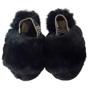 Uggs brand furry yeah black slingback slides little kids size 6 barely worn in great condition no major flaws minor signs of wear. Simple comfortable Chic glam trendy.