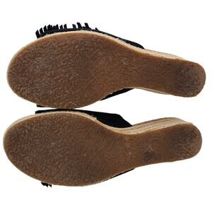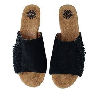 Fringed black suede Ugg espadrille slides in excellent used condition. Heel is 2". Comfortable fun summer shoes with fringe.
