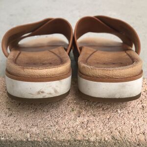 Natural color, leather, and in good condition, check out the pictures. Side walls need a little bit of cleanup.
