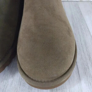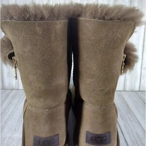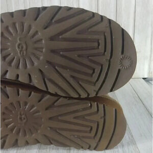 Ugh Bailey Zip Short Shearling Boot in Tan. Women's size 10. Good used condition. See pictures for more details. Tread is in excellent condition. Suede has a few small spots, visible in picture 3.