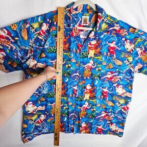 Ugly Christmas 2X Unisex Hawaiian theme Santa buttondown Shirts. Festive Unique Find. Standout. Christmas party. Cruise. Travel. Vacation. In excellent condition. Must see all pictures for the details and measurements. Offers Welcome. Ships Fast