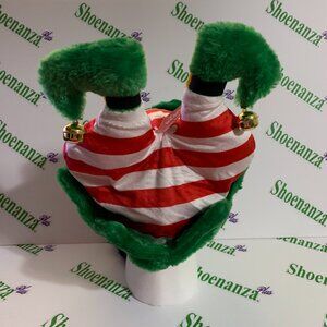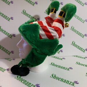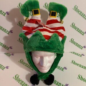 Ugly Christmas Hat Holiday Time Plush Elf Feet Legs Dangle Bells Ear Flaps Strap