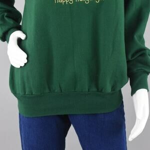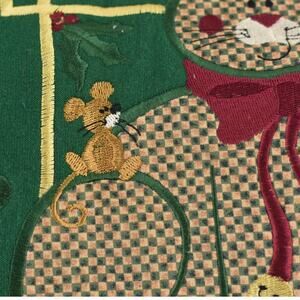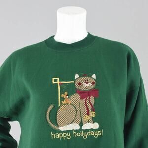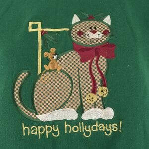 Ugly Christmas Holiday Cat Embroidered Green Sweatshirt Women's Large