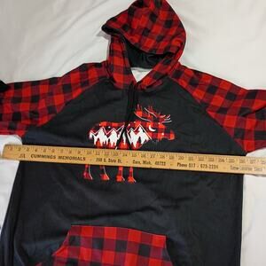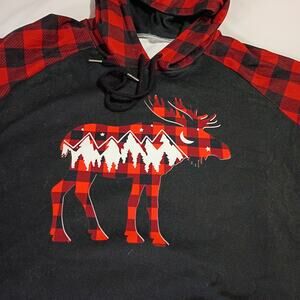 Ugly Christmas Hoodie Men's MOOSE Buffalo Plaid XL Lightweight Red/Black