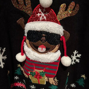 Ugly Christmas Sweater – Black, Dog Design w/ Sequin Sunglasses