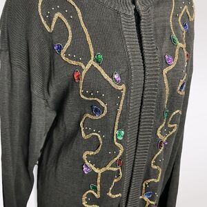 Ugly Christmas Sweater Cardigan One Hook Closure Embroidered Size Medium Rope