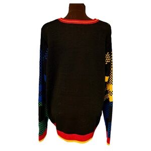 Ugly Christmas Sweater Dinosaur T-Rex Dino Santa Hat Plaid, Mens size Large