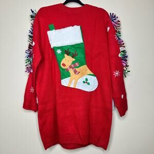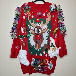 Ugly Christmas Sweater Dress Tunic LIGHTS UP Tacky Tinsel Xmas Party Winner XL