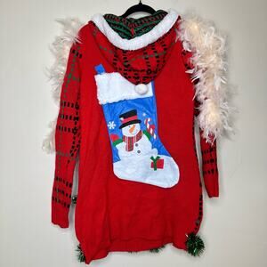 One of a kind Ugly Christmas Sweater! Each sweater is hand crafted by yours truly. I find the sweater which is the base and add each ornament, tinsel, Christmas lights, etc. and you get to enjoy without all that hassle!