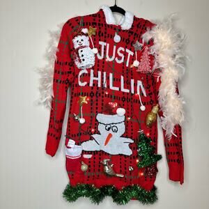 Ugly Christmas Sweater Dress Tunic Snowman LIGHTS UP Tinsel Xmas Party Winner