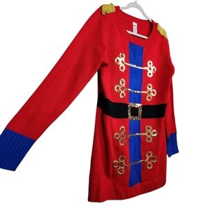 Holiday Time Tacky Christmas Sweater Tunic Dress Toy Soldier Women's Size Medium