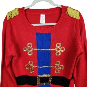 Ugly Christmas Sweater Dress UCS Toy Soldier Nutcracker Sequins Women's Medium