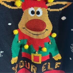 Ugly Christmas Sweater Express Your Elf Rudolph Reindeer NWT XXL Black Red