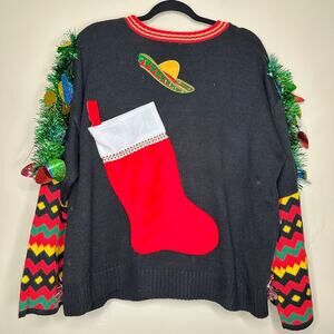 Ugly Christmas Sweater Feliz Navidad LIGHTS UP Tinsel Xmas Party Winner Size XL