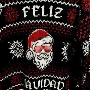 Ugly Christmas Sweater Feliz Navidad Santa Sunglasses Snowflakes Unisex S-M-L