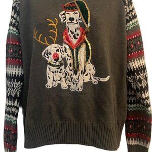 Ugly Christmas Sweater - Festive Dalmatian Reindeers Design in Gray and Red, Med