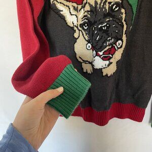 Ugly Christmas Sweater French Bulldog Design Red & Green women's size XL