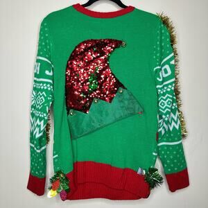 Ugly Christmas Sweater Grinch LIGHTS UP Tacky Tinsel Xmas Party Winner Small
