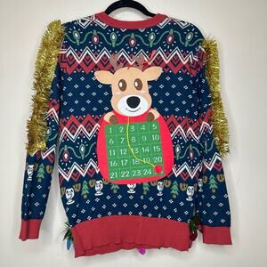 One of a kind Ugly Christmas Sweater! Each sweater is hand crafted by yours truly. I find the sweater which is the base and add each ornament, tinsel, Christmas lights, etc. and you get to enjoy without all that hassle!