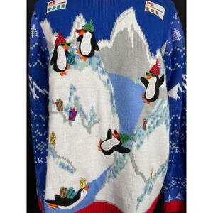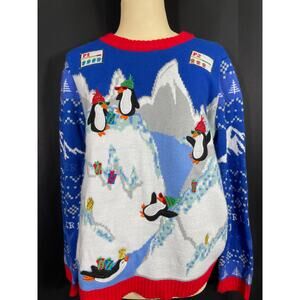 Ugly Christmas Sweater, Holiday Time, Husky XL 14-16, Penguins on a mountain