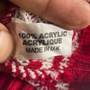 The sweater is an original piece from the 1990s and was made in the United Kingdom. It is perfect for casual occasions and will add a touch of vintage charm to your winter wardrobe. Don't miss out on the opportunity to own this unique and fun sweater!