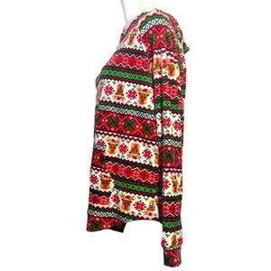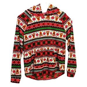 Ugly Christmas Sweater Hoodie Fair Isle Print Velvety Velour Front Pocket OS
