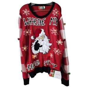 Ugly Christmas Sweater Light Up XXL Santa Where's My Hos At?