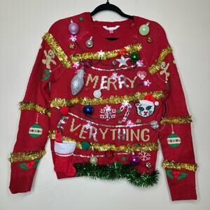 Ugly Christmas Sweater Merry Everything LIGHTS UP Tacky Tinsel Xmas Party Winner