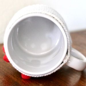 Super cute and brand new mug that features an ugly Christmas sweater! The ‘sweater’ portion is detachable with a button to wash at a later time or remove when the holiday season is over. The mug is 100% acrylic. Microwave and dishwasher safe.